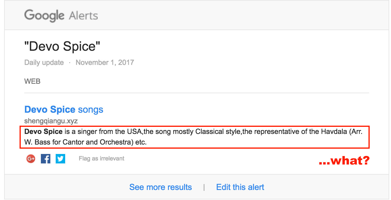 Devo Spice is a comedy-rapper from New Jersey who has become one of the most popular artists on the Dr. Demento Show. He was the founding member of Sudden Death, the comedy rap group that had the #1, #2, and #4 most requested songs of 2007 on the Dr. Demento Show. ("Cellular Degeneration", "Getting Old Sucks" and "Pillagers", respectively.)